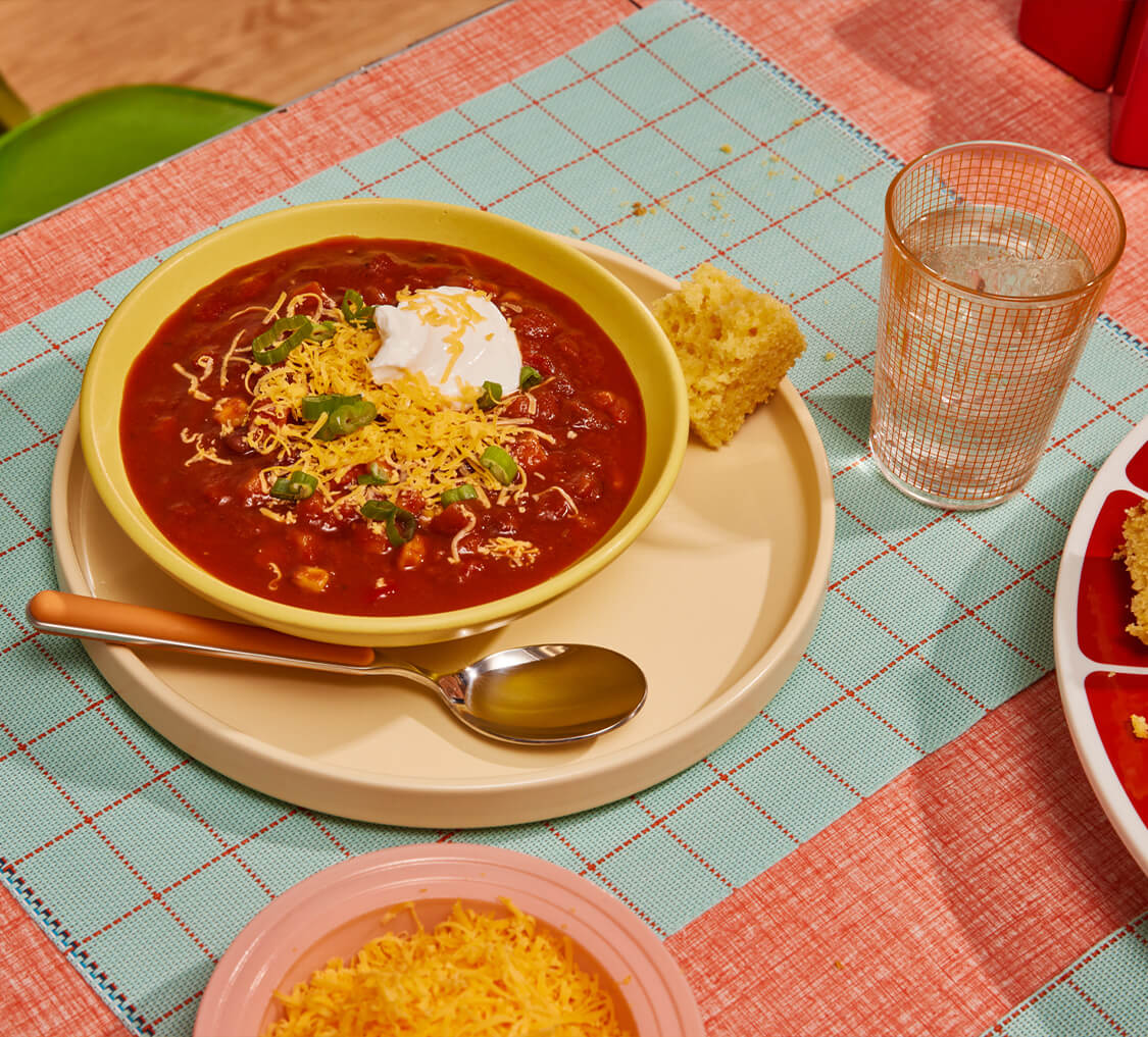 Our Fire-Roasted Sweet Potato chili is an homage to those cozy comforting campfire meals. It’s warm and hearty, subtly spicy, and filled to the brim with clean ingredients. A perfectly tomatoey sauce mingles with chunks of sweet potatoes, whole corn kernels, red bell peppers, roasted green chilis, and of course, lots and lots of beans!